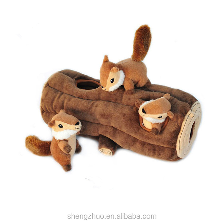 Cute cartoon 3 little squirrel plush toys with tree house set