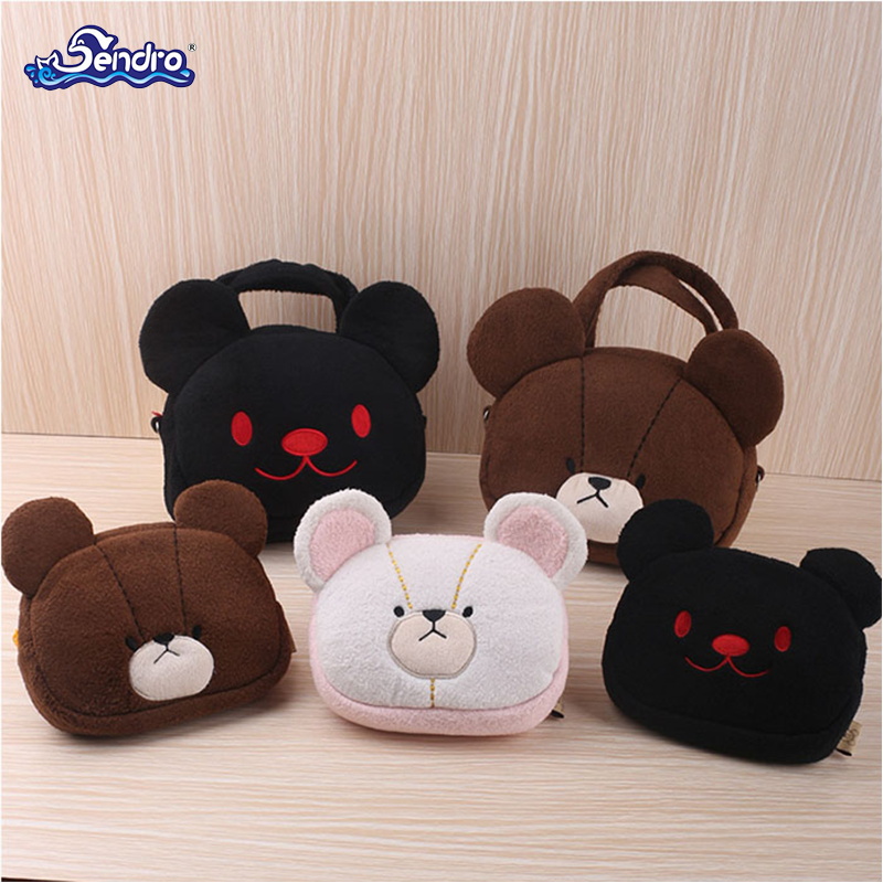 Plush animal design bear shoulder bag hand bag