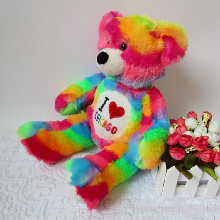 Custom plush colorful rainbow teddy bear stuffed toy