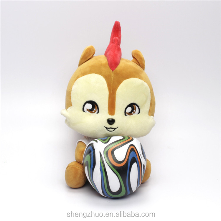 Factory customized sports mascot toys plush squirrel with football