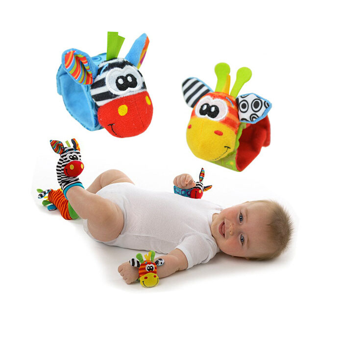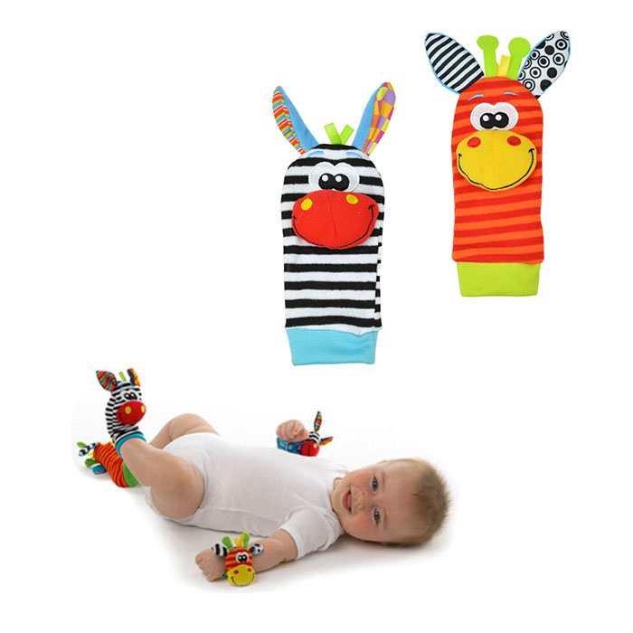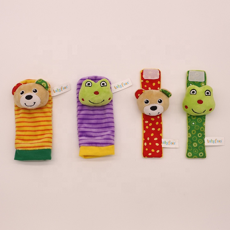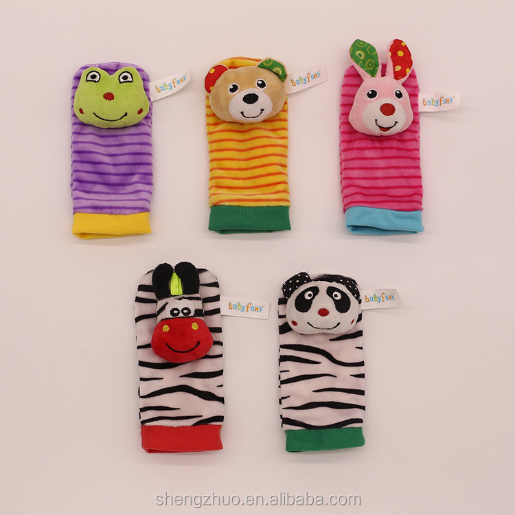 Popular animal infant newborn toy plush wrist rattle baby foot socks
